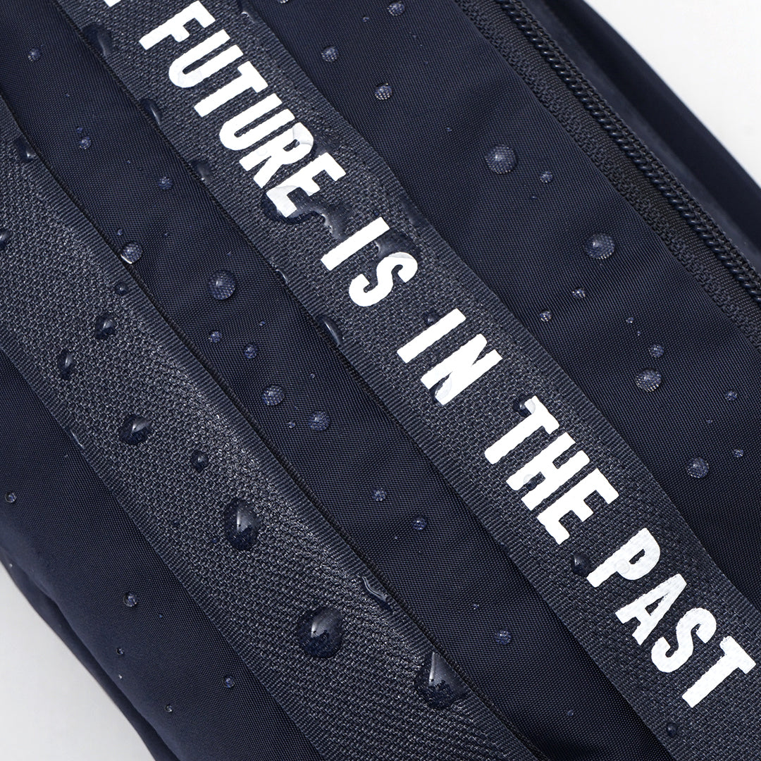 Front Zipped Pocket with Text Hidden Inside the Magic Tape.