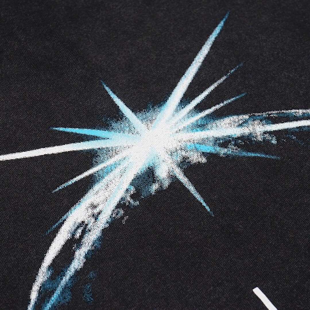 Distressed Printed Graphic and Text at Front.